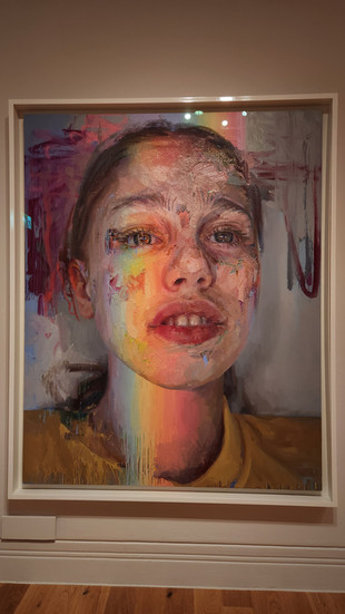 As you walk through the space, you find yourself fighting for a position, everyone wanted to feel the aroma of the artwork, and to be engulfed. Originally, I wasn't as interested in her most recent project, 'Latent', and favoured 'Propped' during my studies, but now that I have left university and seeing them in the flesh has changed my mind. The power her choice of pallette and layering manages to bring, lets her subjects blend into the surroundings, whilst falling out the painting. The reflection in the eyes, the facial expressions putting you in a trance, makes it feel like you can never be in the space long enough to fully comprehend the scale of talent.